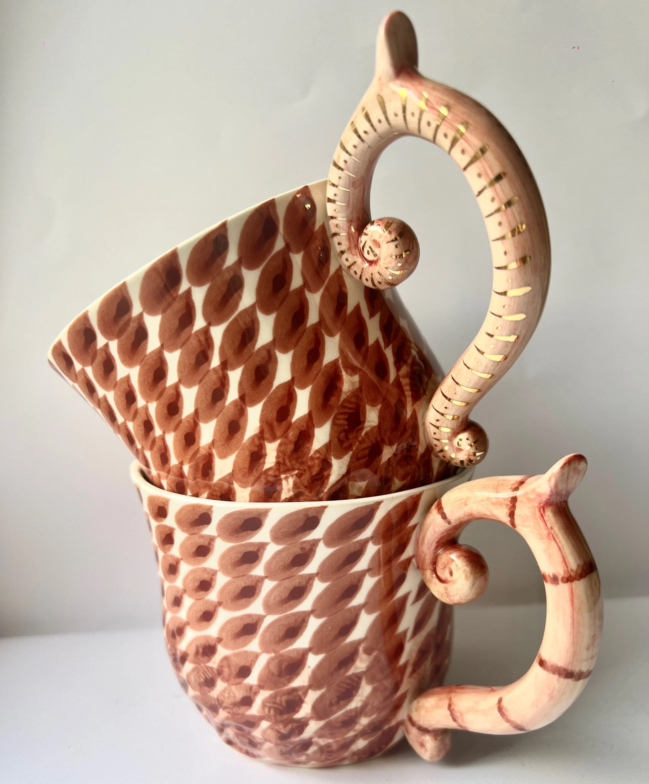 MIRANDA BERROWCERAMIC SHOP ⬇ Large tea mug (without gold) £30.00 Large Dash Patterned Tea Mug without Gold handle detailing £30.00 Small dash patterned jug £66.00 Small Malmo ribbed mug £35.00 Mini espresso cup and saucer £35.00 Espresso mug - dash pattern £28.00 Teapots £120.00